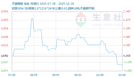 10月23日生意社不锈钢板基准价为12007.14元/吨